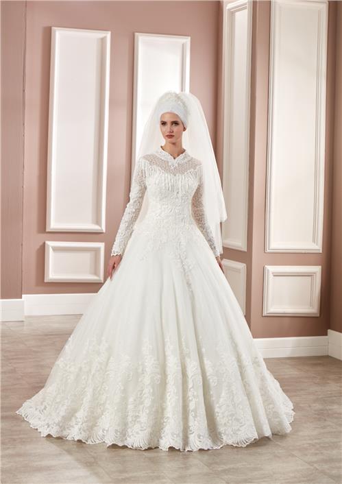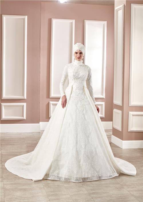 Bu özel günde ince belli bir gelin olmak isterseniz belden hafif genişleyen formu sayesinde yine A Kesim Tesettür Gelinlik Modelini tercih edebilirsiniz.