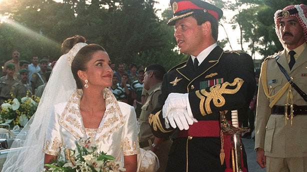 1993 yılında, şimdi Ürdün Kralı olan Prens Abdullah, sıradan bir kadın olan Rania ile evlendi. Bugün Rania, zamanımızın en güzel ve şık kraliçelerinden biri olarak kabul ediliyor. Düğünü için Ürdün’ün geleneklerine uygun bir elbise tercih etti. Ürdün Kraliyeti için normal kabul edilen, zengin altın nakışlarla süslenmişti.