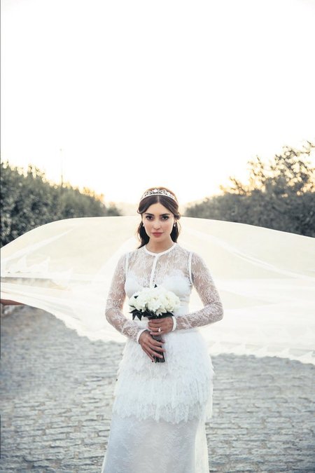 Altuğ Gültan ile düğünü geçtiğimiz akşam İzmir Kemal Bey Çiftliği’ndeydi. Törende Elie Saab ve Vakko marka iki gelinlik giyen güzel oyuncu, 7 metre uzunluğunda duvak taktı.