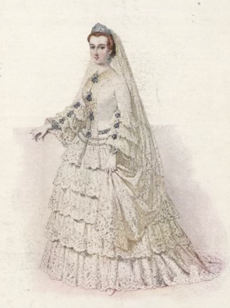 1. İmparatoriçe Eugenie (Fransa): Eugenie, Fransa İmparatoriçesi III. Napoleon’un eşi idi. 1853 yılında evlendiğinde, giydiği gelinlik dönemin modasına uygun bir tarzdaydı. İpek, dantel ve tüylü detaylarla süslenmiş uzun bir elbiseydi. Eugenie, kraliyet stilindeki gelinlikleri belirleyen bir moda ikonu olarak ün kazandı.