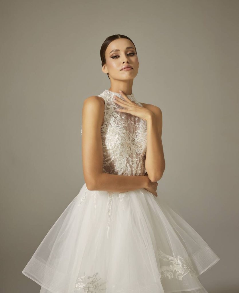Mediha Cambaz Ortega, Halter Yaka Tül Bohem Gelinlik Modeli. (önden)